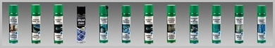 Vybraný sortiment produktové řady autolaky a autobarvy TECTANE zahrnující speciální zinkové spreje a hliníkové spreje.