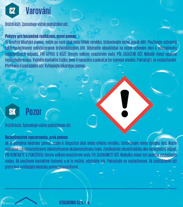 Dávkování: Přípravek Laguna Ca se aplikuje při napuštění bazénu a dále vždy při každém dopouštění. Dávkujeme 25 – 50 ml/m3 vody dle tvrdosti při napuštění bazénu a dále vždy při každém dopouštění bazénu.